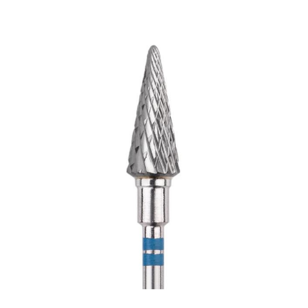 Freză profesională din carbură de tungsten HEAD, formă con, albastru. L-14,0 MM, Ø6,0 MM. Destinată tehnicienilor de unghii pentru prelucrarea precisă a cuticulelorși a unghiei artificiale. Compatibilă cu freza electrică standard.