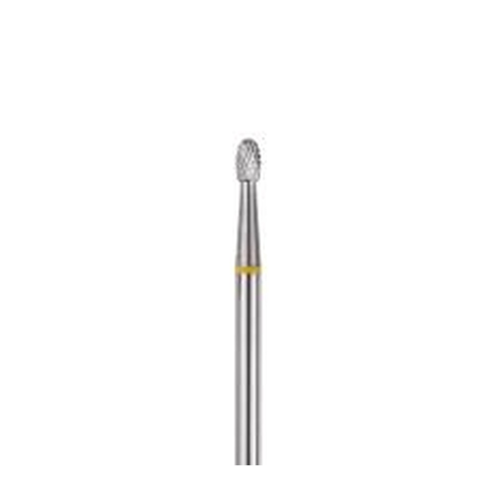 Freză profesională din carbură de tungsten HEAD, formă picătură rotunjită, galben. L-4,0 MM, Ø2,3 MM. Destinată tehnicienilor de unghii pentru prelucrarea precisă a cuticulelorși a unghiei artificiale. Compatibilă cu freza electrică standard.
