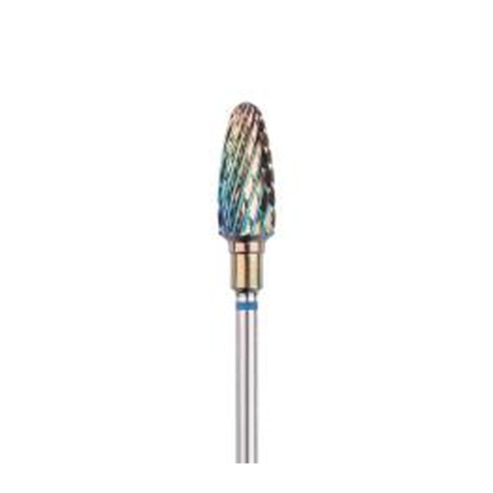 Freză profesională din carbură de tungsten HEAD, formă porumb, albastru. L-14,0 MM, Ø6,0 MM. Destinată tehnicienilor de unghii pentru prelucrarea precisă a cuticulelorși a unghiei artificiale. Compatibilă cu freza electrică standard.