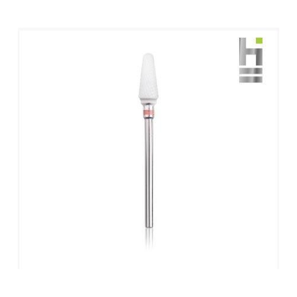 Freză profesională din ceramică HEAD, formă con, roșu. L-14,0 MM, Ø6,0 MM. Destinată tehnicienilor de unghii pentru prelucrarea precisă a cuticulelorși a unghiei artificiale. Compatibilă cu freza electrică standard.