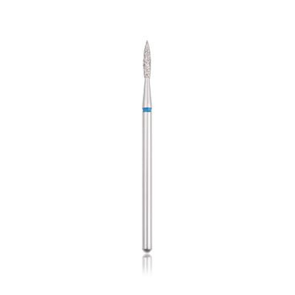 Freză profesională din diamant HEAD, formă flacără, albastru. Ø1,8 MM. Destinată tehnicienilor de unghii pentru prelucrarea precisă a cuticulelorși a unghiei artificiale. Compatibilă cu freza electrică standard.