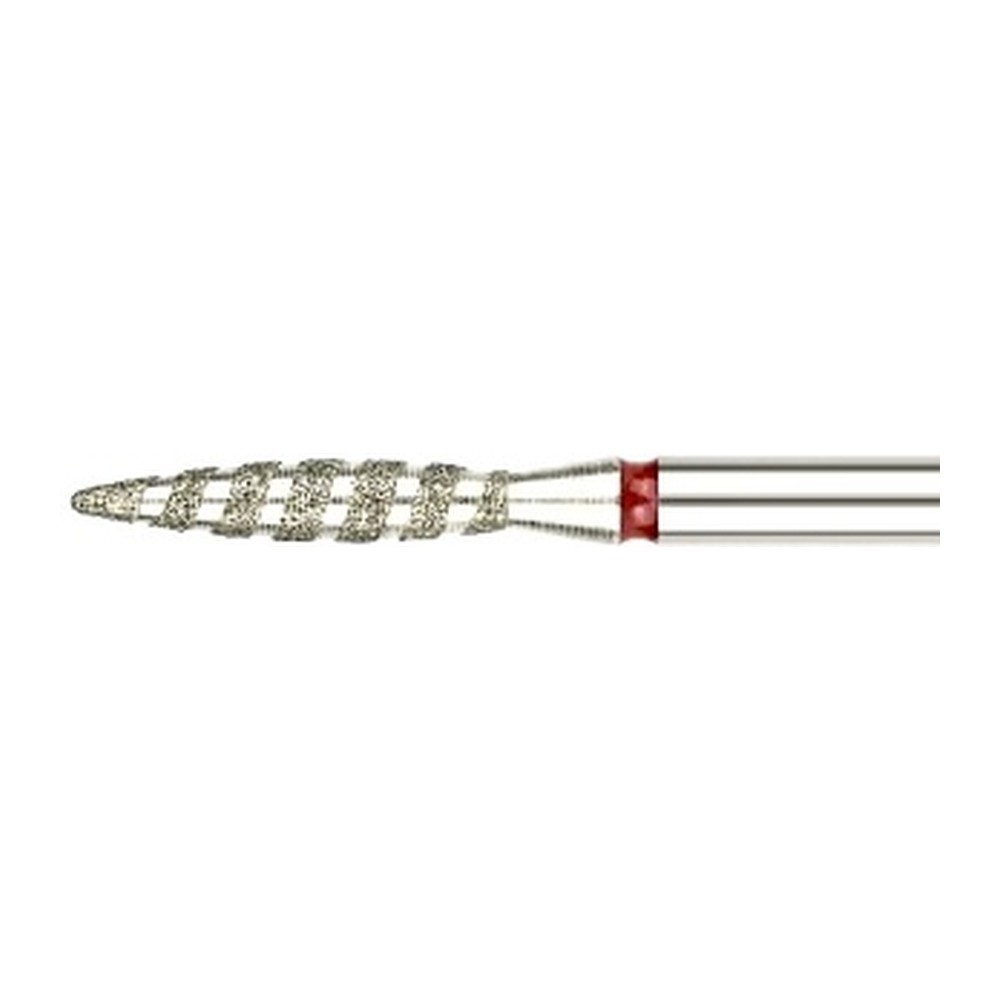 Freză profesională din diamant HEAD, formă flacără tornado, roșu. Ø2,1 MM. Destinată tehnicienilor de unghii pentru prelucrarea precisă a cuticulelorși a unghiei artificiale. Compatibilă cu freza electrică standard.