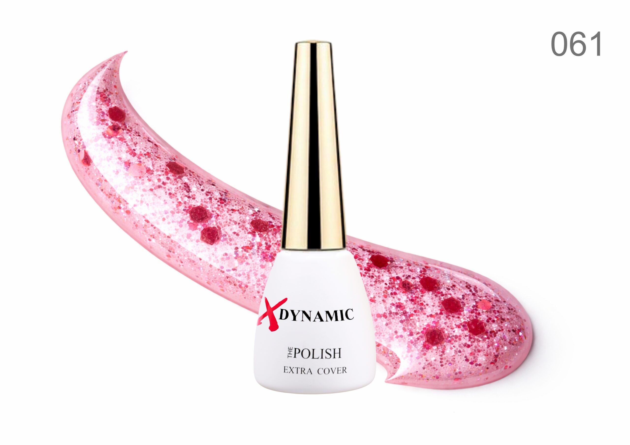 Oja semipermanentă XDynamic 061 – Roz transparent cu glitter roșu intens și efect confetti