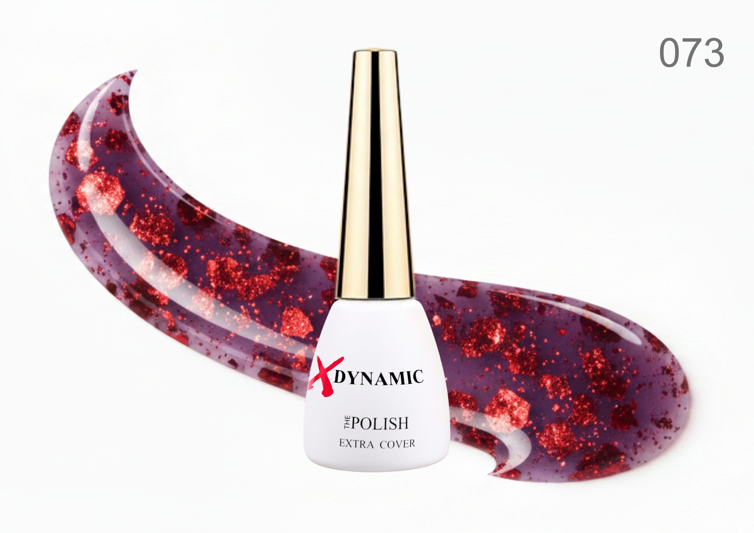 Oja semipermanentă XDynamic 073 – Vișiniu închis cu glitter roșu intens, efect glam